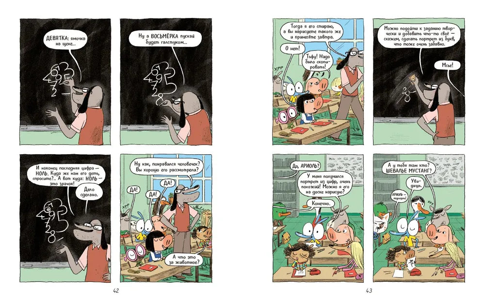 Господин пёс — это мсье Лебарбос, классный руководитель Ариоля. Высокий спаниель в очках редко бывает выбрит до блеска, зато неизменным блеском отличаются его замечательные уроки! Ведь у него в запасе всегда есть увлекательная игра или смешная история, чтобы сделать материал понятным. Не верите? Тогда открывайте тетради, берите ручки и слушайте…