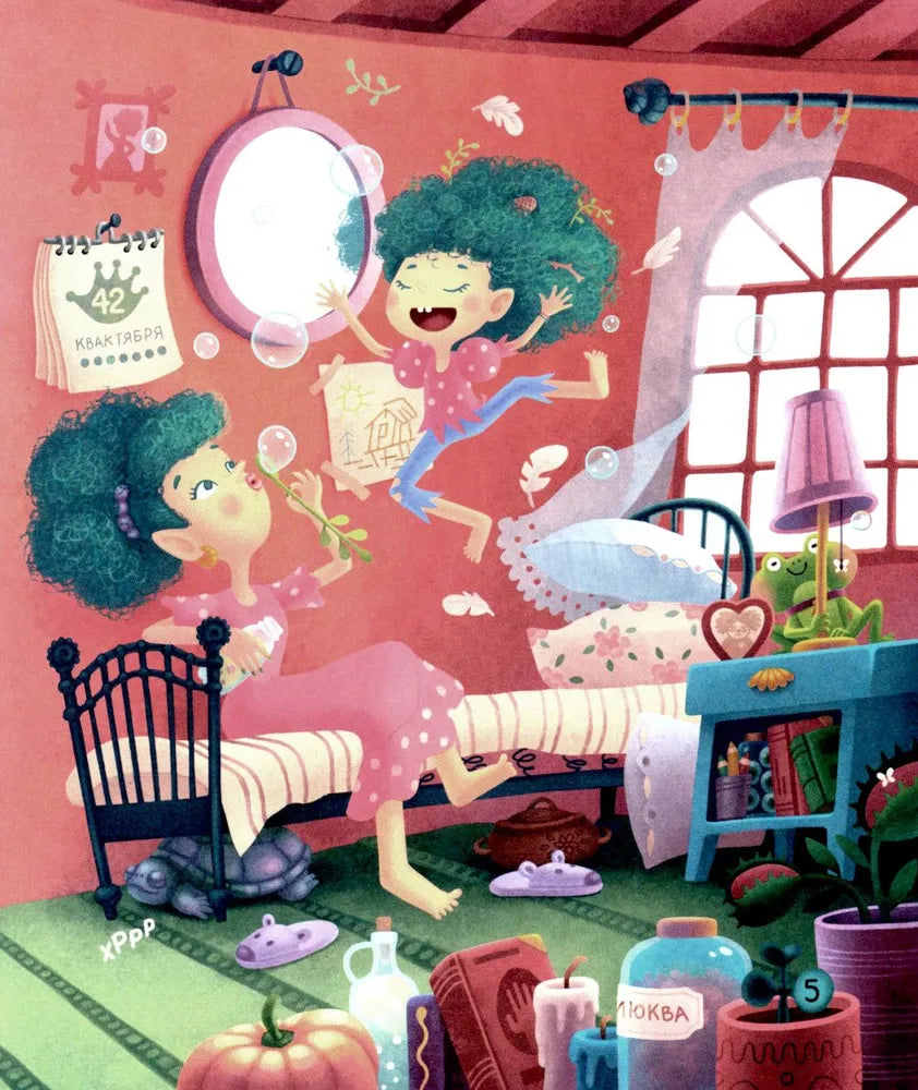 Александра написала весёлую и немного лиричную историю о приключениях кикиморы Ириски и Кота, а Света Олейникова (окончила Британскую высшую школу дизайна) нарисовала к ней потрясающие иллюстрации.
