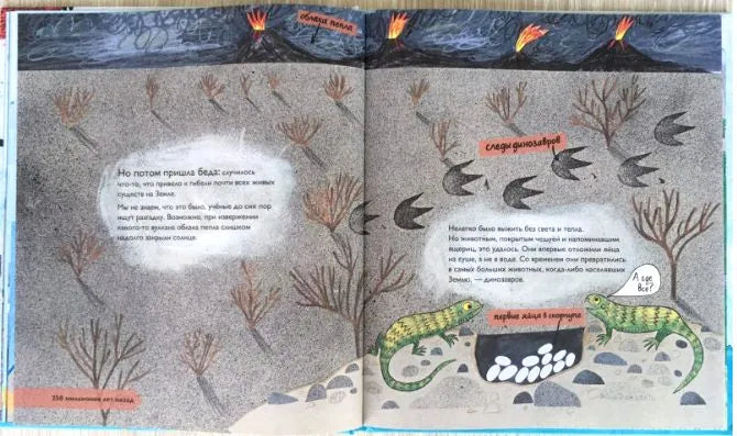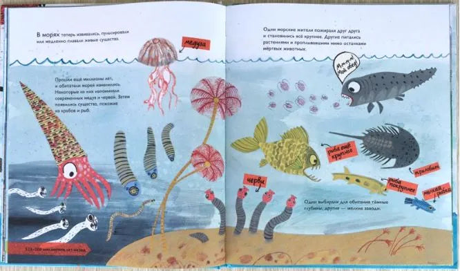 Об истории жизни на нашей планете интересно и понятно для дошкольников рассказывают эколог Кэтрин Барр и биолог Стив Уильямс с помощью прекрасных динамичных иллюстраций Эйми Хасбанд. Извержения вулканов, жизнь простейших организмов, динозавры и эволюция человека – события, о которых рассказывается в книге, заняли 4 миллиарда лет и несколько десятков увлекательных страниц.