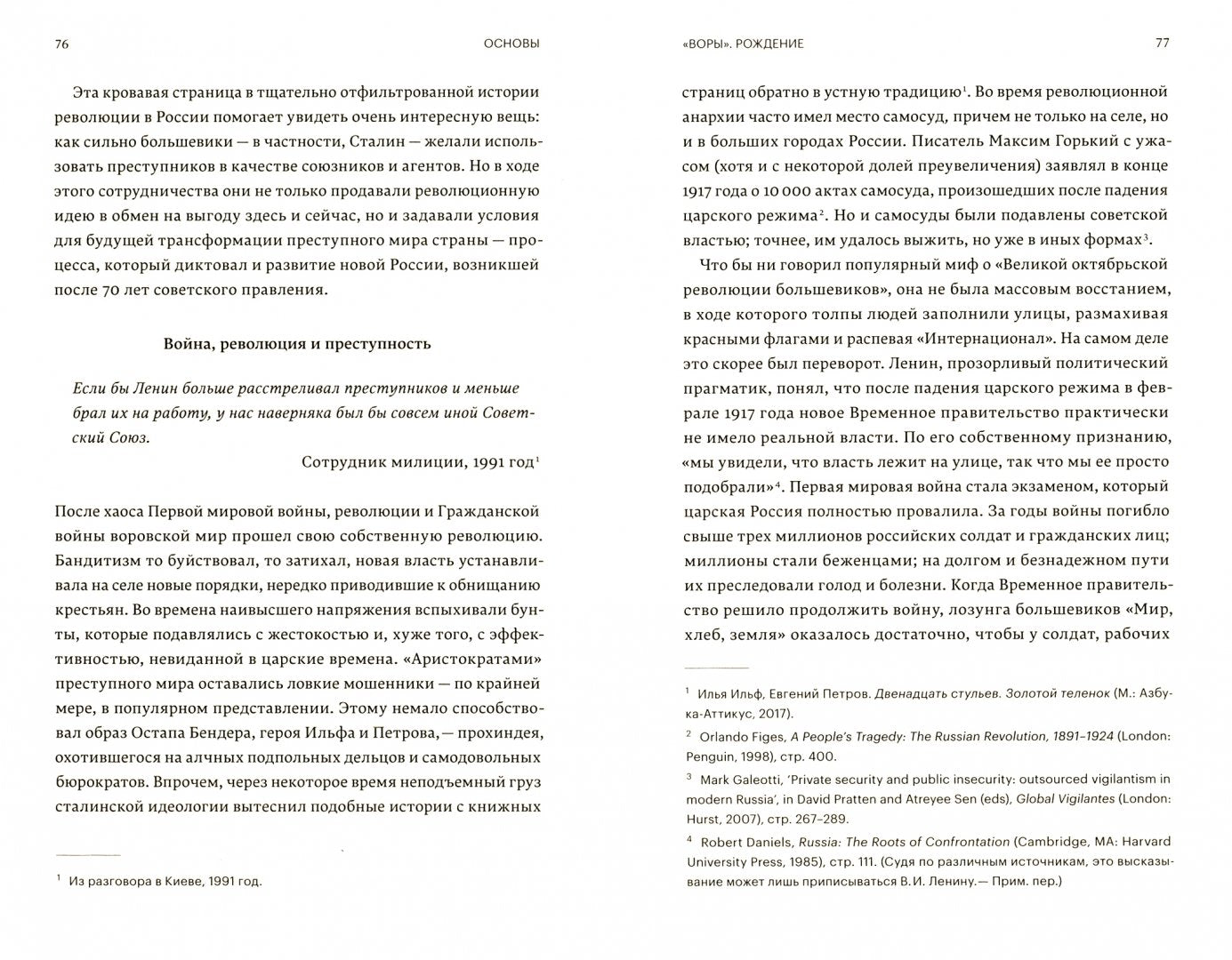 Книга Галеотти — результат тридцатилетних исследований: работы с архивами, личных встреч и полевых наблюдений. „Воры“ проникнуты тем чувством, которое разделяют (и скрывают) все хорошие русологи, и которое покажется особенно неочевидным применительно к предмету книги: любовью к России и уважительным к ней интересом.