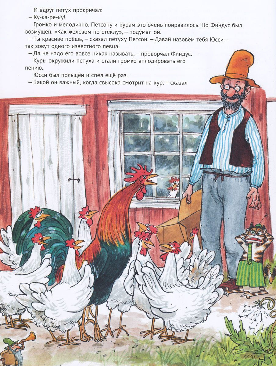 У Петсона в курятнике десять кур. Котёнок Финдус часто их дразнит. Иногда они вместе играют в салочки. Если не считать Петсона, куры — самые близкие друзья Финдуса. Но в один прекрасный день в огороде появляется огромный и красивый петух. Приключения начинаются!