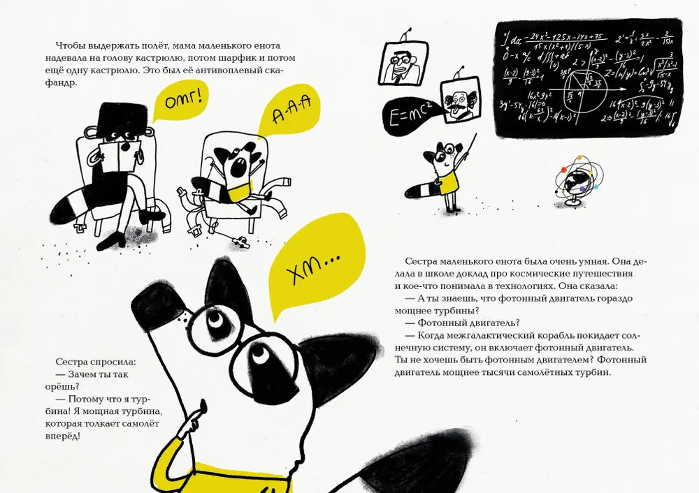 Хорошо, что у маленького енота была сестра. Она качала головой, вспоминала школьную физику и почти всегда находила гениальное решение.