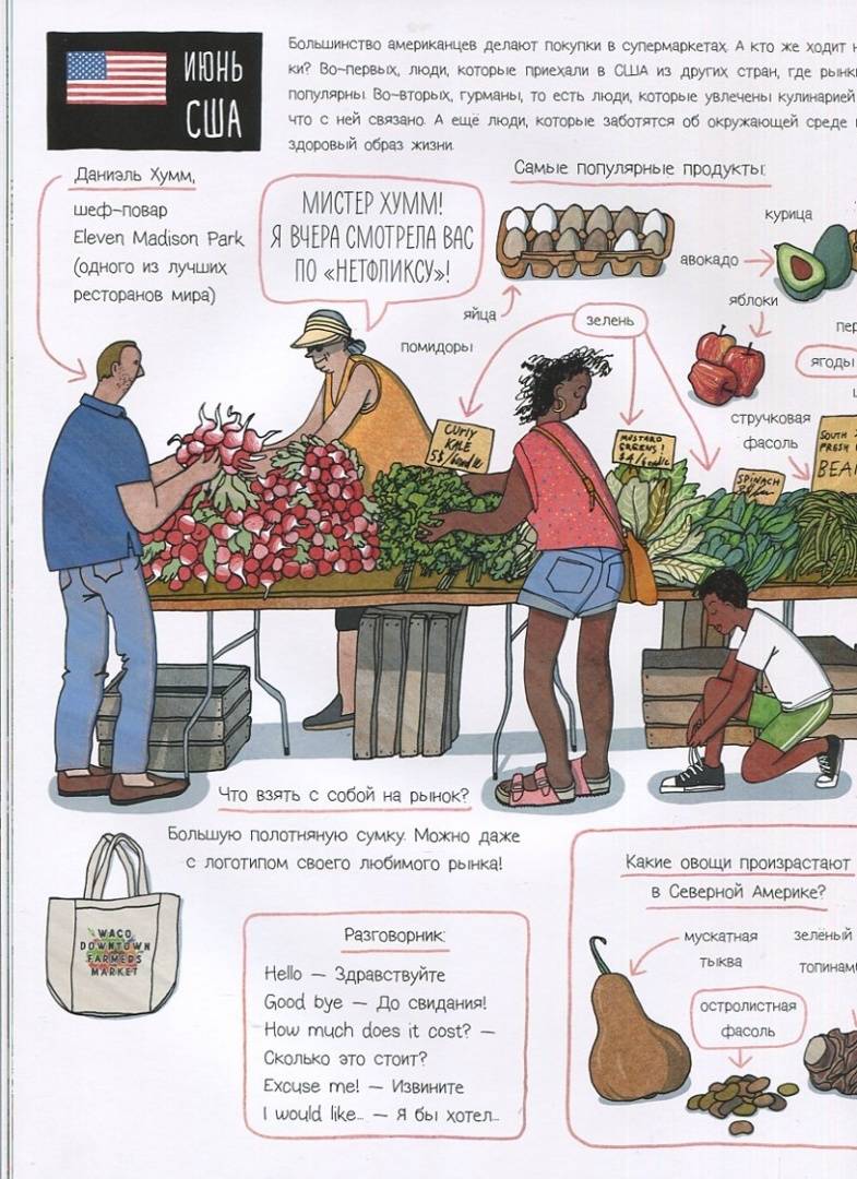 Открывай книгу и отправляйся в кругосветное гастрономическое путешествие по 24 фермерским рынкам в 12 странах мира — от Европы до Африки. Ты узнаешь, как выглядят рынки в разных уголках планеты и что на них можно купить. А ещё тебя ждут увлекательные квесты на каждом из рынков и рецепты национальных блюд.