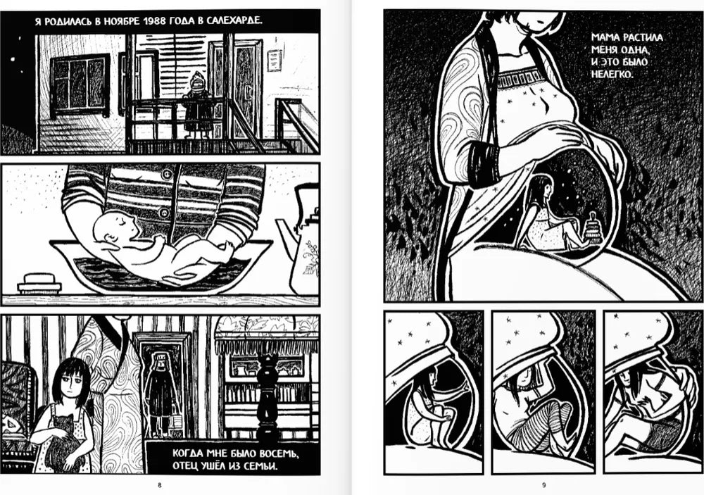 Наверное, лучший отечественный комикс. Локальная и очень личная история про детство, проведённое в угрюмом постсоветском Салехарде, и прощание с родным городом оказывается универсальной историей о родине, семье, поиске и северном сиянии, которое каждый носит в себе.