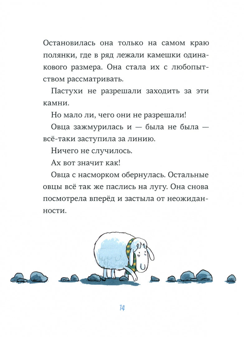 В своей новой книге Ульрих Хуб, признанный немецкий детский писатель и автор бестселлера «Ковчег отходит ровно в восемь», снова обращается к библейскому сюжету, интерпретируя его с исключительным юмором. Героини книги – овца с гипсом, овца с косым пробором, овца с зубной пластинкой и их подруги – обсуждают, стоит ли дарить новорожденному сертификат в магазин и как лучше сообщить пастухам, что вещи из овечьей шерсти уже не в моде. В этой короткой, но безумно смешной книге вскользь затронуты темы пластикового загрязнения планеты и гендерного равноправия, но основное внимание уделяется теологическим вопросам: поискам, веры в чудеса и любви к ближнему.
