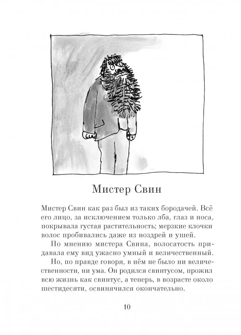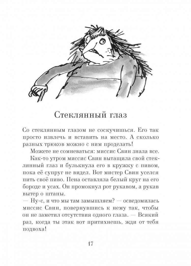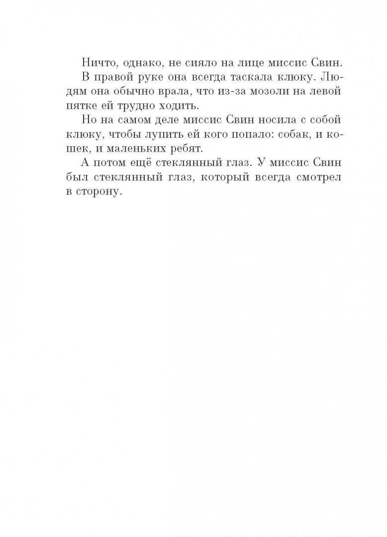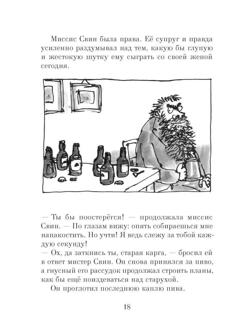 Мистер и миссис Свин — самые вонючие, противные и уродливые люди в мире. А их любимое развлечение — шутить друг над другом немилосердно и безобразно. А дом у них без окон, чтобы никто не мог заглянуть внутрь. И в саду растут чертополох и крапива, чтоб ни один ребенок не бегал бы там.