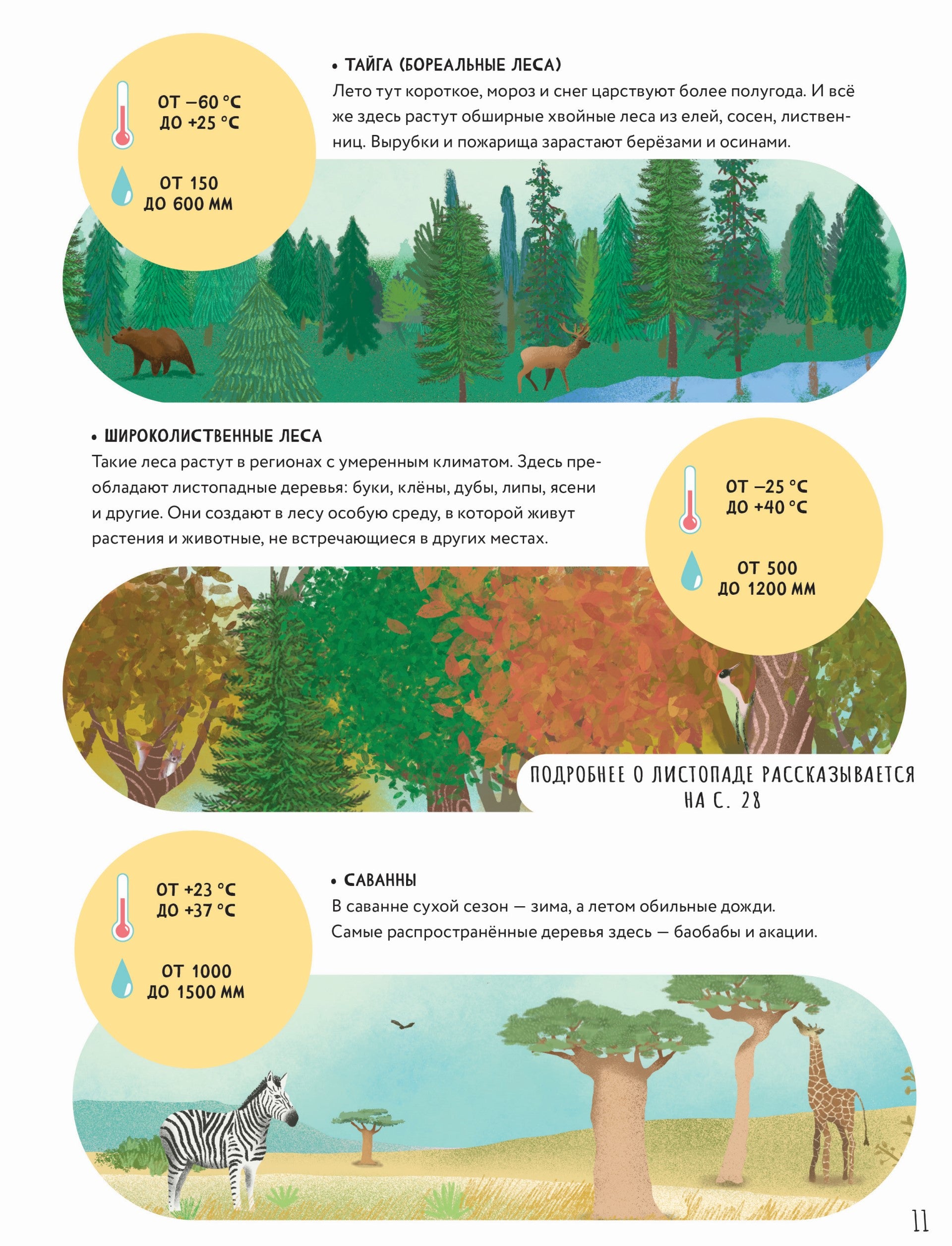 А ещё вы узнаете, как определять деревья и как описать незнакомое дерево, как деревья размножаются, как распространяют семена, какие животные не могут жить без деревьев и как деревья зависят от животных. Вы прочитаете, как деревья дышат, питаются, что происходит после их смерти. Ну и, конечно, в книге уделяется большое внимание тому, как деревья помогают нам, людям, и всей планете: они не только выделяют кислород, но и защищают почву, регулируют температуру, служат науке, искусству и религии.