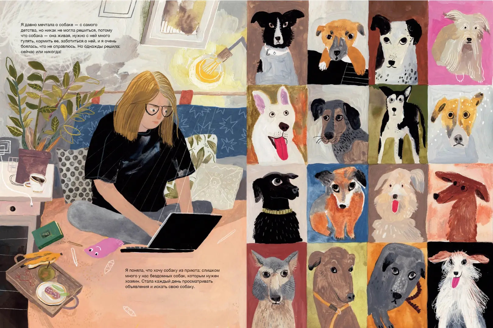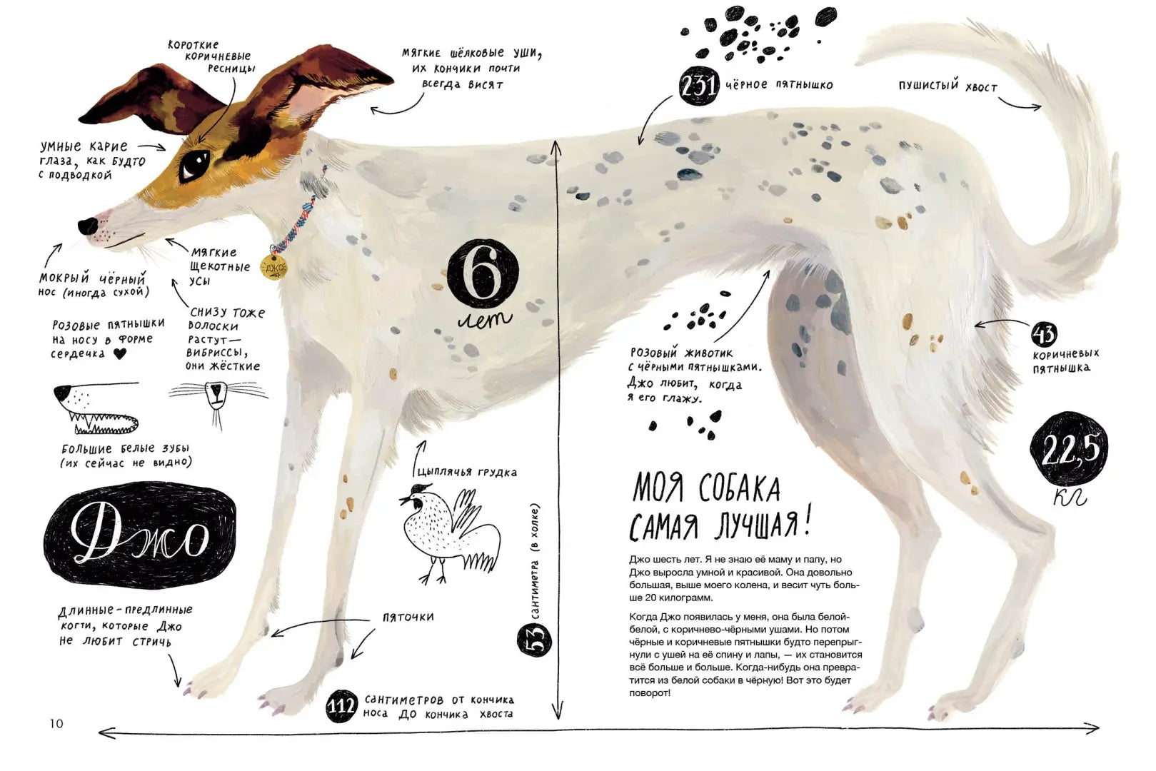 Меня зовут Лена Булай, я иллюстратор, и у меня есть любимая собака по имени Джо. Когда она появилась, я практически ничего не знала о собаках и наделала кучу ошибок. Но я много училась, читала, ходила на семинары и консультировалась у специалистов по поведению собак. Узнавала, как правильно общаться с собакой, слушать её и слышать, как строить с ней отношения, как заботиться о собаке и воспитывать, как подбирать правильное питание, гулять с ней и путешествовать. Мы с Джо проделали огромный путь, и из запуганного уличного щенка Джо превратилась в уверенную, довольную жизнью собаку. Я не идеальная хозяйка, а Джо не идеальная собака, но для меня она лучшая, это точно. Надеюсь, эта книга поможет тебе понять, кто такие собаки, и найти среди них самую-самую, именно твою!